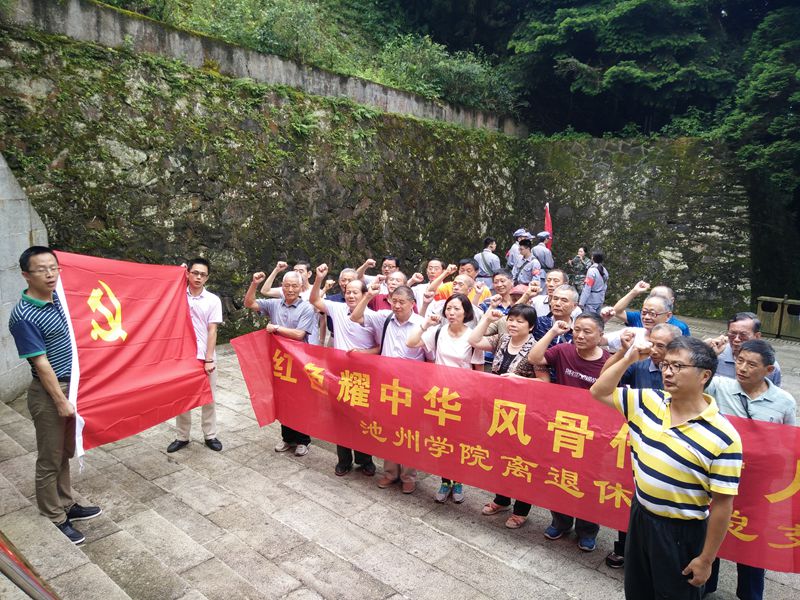 红色耀中华 风骨传后人 ——池州学院离退休党总支党员接受革命传统教育活动 为庆祝和庆祝建党96周年,深入贯彻习总书记系列重要讲话精神,落实贯彻“两学一做”学习教育,离退休党总支、离退休工作处开展了“放飞中国梦、传承红基因”系列活动。其中,7月7日至9日,组织党员赴中国革命的摇篮——井冈山,缅怀革命先烈,感悟井冈精神,再走红色之路,实地接受了一次生动而深刻的革命传统教育。